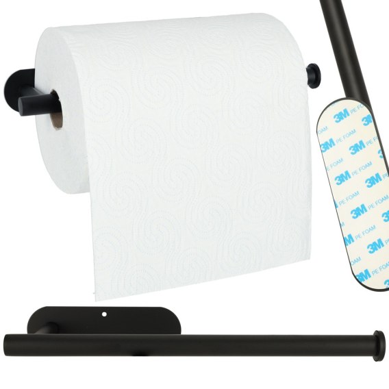 Uchwyt wieszak na papier ręcznik papierowy kuchenny taśma dwustronna mat loft czarny