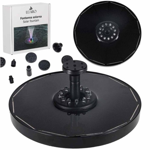 FONTANNA SOLARNA OGRODOWA RGB LED LUARO - PŁYWAJĄCA FONTANNA SOLARNA Z PANELEM SŁONECZNYM + 8 WYMIENNYCH DYSZ