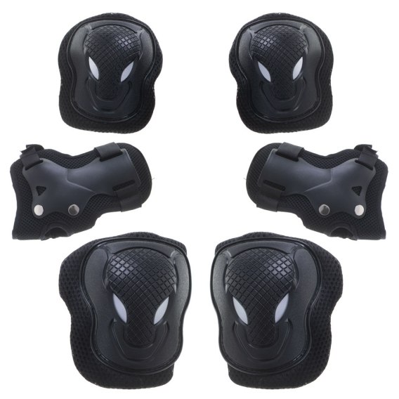 W zestawie znajdują się ochraniacze na nadgarstki, łokcie i kolana