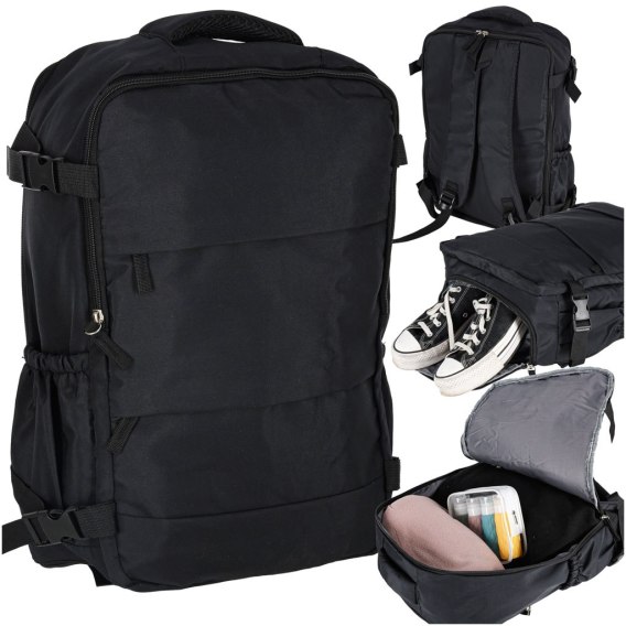 Plecak turystyczny kabinowy podróżny bagaż podręczny czarny 45x30 cm