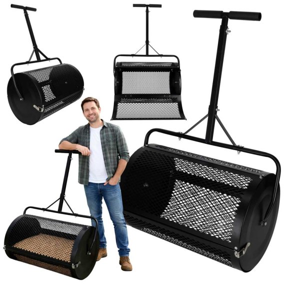 Przed użyciem zapoznaj się z instrukcją obsługi. Produkt nie jest zabawką - przechowuj poza zasięgiem dzieci. Używaj tylko na płaskim, równym terenie. Nie przeciążaj rozsiewacza nadmierną ilością materiału. Nie modyfikuj produktu. Podczas pracy używaj rękawic ochronnych. Regularnie sprawdzaj stan siatki, walca i uchwytu.